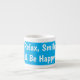 Xícara De Espresso Relaxe sorria seja feliz gerbera flores azul