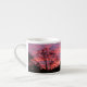 A beleza da paisagem cênica das piores é capturada nesta fotografia de um nascer do sol de manhã cedo. À medida que o sol nasce do leste, a natureza reflete vibrantemente as cores rosa e vermelha através de uma multidão de nuvens sábias contra um céu azul. O sol, ainda abaixo da linha de costa, captura o forte contraste do horizonte escuro da borda da floresta contra um céu incrivelmente colorido. Uma árvore caduca, com pouquíssimas folhas nos ramos, cria uma silhueta de penas.