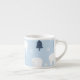 Ursos polares fofinhos cercados por árvores de Natal e flocos de neve contra fundo azul-gelo