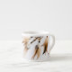 This specialty espresso mug is perfectly sized for a quick double shot, making it a sophisticated addition to any coffee lover's collection. The smooth ceramic finish and sturdy handle ensure a comfortable grip, while the crisp white background makes the vibrant red and gray tones of the artwork stand out beautifully. It is an ideal piece for a minimalist home office desk or a cozy reading nook shelf.