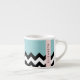 Xícara De Espresso Zigzag preto-e-branco, Chevron, azul, seu nome