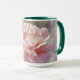 Esta caneca bonito mostra a minha fotografia original de uma bela flor de rosa, florescendo completamente em suas pétalas em um jardim. Minha fotografia original foi processada em uma técnica ilustrada e pareada para um estilo artístico. A alça e o dentro da xícara são um tom verde para complementar o trabalho de arte. Estas são canecas de 15 onças, do tamanho perfeito para o café ou chá da sua casa - ou até chocolate quente! Ele faria um presente de excelente e você poderia colocar pacotes de café, bolsas de chá ou dentro de chocolate quente. Uma outra ideia de presente é colocar uma pequena planta nela para torná-la mais especial para o seu amado.