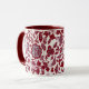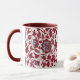 Minha arte digital original nesta caneca apresenta um padrão antigo de flores e folhas, recriada em tons vermelhos e azuis em um fundo branco. A dentro do copo e da pega é um tom vermelho para complementar o padrão floral. Estas são canecas de 11 onças, do tamanho perfeito para o café ou chá da sua casa - ou até chocolate quente! Ele faria um presente de excelente e você poderia colocar pacotes de café, bolsas de chá ou dentro de chocolate quente. Uma outra ideia de presente é colocar uma pequena planta nela para torná-la mais especial para o seu amado.