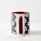 caneca preta e branca em forma de flor branca A alça é realçada em vermelho.
