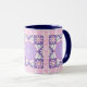 O meu trabalho de arte de desenho digital original é apresentado nesta bonito caneca rosa, que consiste num padrão de coloração estrela vintage, processado em tons roxos e cor-de-rosa e com uma aparência ligeiramente angustiada. O puxador e o dentro da xícara são um tom marinho-azul para complementar o trabalho de arte. Estas são canecas de 11 onças, do tamanho perfeito para o café ou chá da sua casa - ou até chocolate quente! Ele faria um presente de excelente e você poderia colocar pacotes de café, bolsas de chá ou dentro de chocolate quente. Uma outra ideia de presente é colocar uma pequena planta nela para torná-la mais especial para o seu amado. Também daria um presente de excelente para o amante ou criador de colcha.