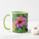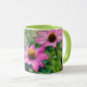 Esta caneca floral mostra minha fotografia original de flores rosa da Zinnia em um jardim. Eu processei minha fotografia com um estilo de pintura de pasta de óleo para um talento artístico. O cabo e dentro da xícara são um verde-claro para complementar o trabalho de arte. Estas são canecas de 11 onças, do tamanho perfeito para o café ou chá da sua casa - ou até chocolate quente! Ele faria um presente de excelente e você poderia colocar pacotes de café, bolsas de chá ou dentro de chocolate quente. Uma outra ideia de presente é colocar uma pequena planta nela para torná-la mais especial para o seu amado. Um presente de excelente para um amante da natureza ou amante da flor.