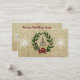 Um cartão de visita que caracteriza um vale ou um presente para um salão de beleza com um fundo bege de serapilheira, com grandes grinaldas e um grande par de tesouras/tesouras. Aperfeiçoe para cabeleireiros, hairstylists, armários do cabelo, cosmetologists, cosmetologia, salões de beleza e mais durante a estação do inverno do Natal do feriado!