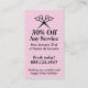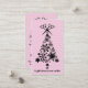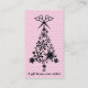 Um cartão de visita que caracteriza um vale ou um presente para um salão de beleza com uma luz - fundo cor-de-rosa com as listras brancas da viga, com uma árvore de Natal feita de flocos de neve pretos. Aperfeiçoe para cabeleireiros, hairstylists, cosmetologists, cosmetologia, salões de beleza e mais!