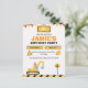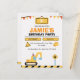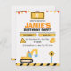 Get ready to dig, build, and play with this fun construction truck birthday invitation! Designed with bright orange, yellow, and black construction elements, it features an excavator, caution signs, and playful banner accents — perfect for little builders who love trucks and diggers. Easily customize with your child’s name, age, date, and party details. Ideal for toddler or boys’ birthdays, construction parties, and truck-themed celebrations.