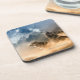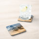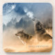 Este conjunto de portas copos de plástico de duro está na forma quadrada e nas cinzas de tons azuis com cores castanho, bege e branco. Texto Yellowstone perto da borda inferior com uma foto de um casal de lobos, um uivando com a lua grande no canto superior. Personalize este item se desejar ou comprar conforme projetado.