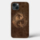 Este design Yin yang impressionante apresenta dois dragões tribais estilizados. As linhas e as espirais isoladas decoram ambos os lados deste símbolo tradicional criando um belo padrão. Os dois dragões fluem do fundo do lágrimo e têm suas bocas largas em uma posição agressiva. Texturas grosseiras e cores naturais dão o padrão de ser esculpido de madeira envelhecida. Este Yin Yang único faz um na moda com design.