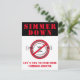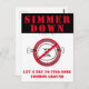 Cartão postal branco com gráficos vermelhos e pretos e cabeça de homem zangada cercada por um círculo vermelho de restrição e "VAMOS SIMER DOWN TENTAR ENCONTRAR ALGUM TERRENO COMUM" e Y-NOT-ME. Este poster é um lembrete para que façamos o nosso melhor em procurar paz uns com os outros.