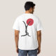 Legal camisa para expressar seu amor por yoga. A mão anotou design em preto e vermelho. Na parte de trás desta camisa, a palavra "yoga" forma uma figura humana que se aproxima do sol.