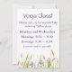Um convite sereno tranquilo com uma mulher numa pose de meditação de ioga desenhada em caneta e tinta acentuada com flores de aquarela. Excelente maneira de anunciar!