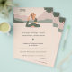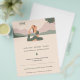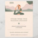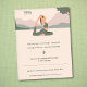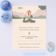 Um panfleto com uma silhueta de uma mulher na pose de pombo-rei, uma paisagem ao fundo e informação personalizável, tudo em tons pastéis. Perfeito para atividades como instrutor ou professor de ioga, meditação, centro de relaxamento ou de bem-estar, terapeuta, etc.