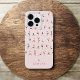 Ilustração colorida de pessoas em diferentes poses de ioga sobre um fundo de rosa claro. Capas de iphone de ioga fofinha, com nome personalizado e inicial.