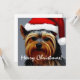Ótima ilustração de um cão de Yorkshire Terrier vestindo um chapéu de Papai Noel.