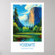 This Yosemite National Park travel poster offers a thoughtfully designed illustration inspired by classic American travel art. The artwork highlights Yosemite’s defining features—towering granite formations, forested valleys, and expansive skies—rendered with balanced color and a clean, timeless composition.