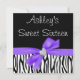 Zebra Roxa Doce 16 Convites de aniversário. Um animal de na moda zebra imprime um doce convite de dezesseis anos, com um coração de diamante e uma ilustração de arco de fita roxa, destacando um design de impressão de zebra preto-e-branco. Designs são ilustrações/gráficos impressos - NÃO EMBELÉCIES REAIS. Personalize facilmente os detalhes de sua festa!