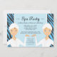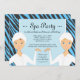 Um par meninas bonito estão mostrando fora seus manicures quando snuggled em suas vestes brancas do luxuoso - toda prontas por um dia de pampering nos termas. Uma grande ideia da festa de aniversário para adolescentes, 'adolescentes e formandos! Em máscaras bonito do azul com um fundo de listras pretas brilhantes do azul e do impressão da zebra do divertimento.