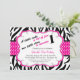 Comece a comemorar bem com este convite de banda de zebra preto e branco, com uma fita de bolinhas rosa-quente através do centro. Perfeito para aquela pequena diva virar um! Há um centro em forma de bolhas brancas com uma forma rosa quente. As informações da festa estão escritas na etiqueta branca. Veja os muitos outros produtos e designs nesta linha. © babystar