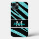 PADRÃO ZEBRA AZUL, NEGRO E BRUTO, COM EFEITO AZUL AQUA OU GLITTER TEAL IMPRESSO COM O SEU INICIAL OU MONOGRAMA E O SEU NOME NUMA LINHA BRANCA E NEGRA. IMPRESSÃO ANIMAL. Personalize com seu nome, monograma, inicial ou texto. Elke Clarke© Faz um acessório de moda de excelente para ela. A mocinista que quer ser moda, mas individual e legal.