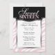 Na moda e impressão zebra única Os 16 convites de Aniversário que contêm um design de cabeçalho de quadro preto sobre um padrão de listras zebra rosa e branca e são impressos personalizados com detalhes de celebração.