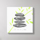 Zen cita pedras de seixo empilhando canvas de parede de design. Jardim de pedra de pedras de seixo com folhas de bambu verdes. Elegante impressão de arte para a aula de meditação, salão de beleza spa, centro de espiritualidade, massagista, tema de casamento, festa relaxante da natureza, budismo, ioga, professor holístico, treinador de vida, atenção, negócios de saúde mental, compro, empresa, loja, escritório etc. As rochas empilhadas balançam umas sobre as outras. Imagem de serenidade. Adicione seu próprio nome personalizado, letras iniciais monográficas, aspas inspiradoras, discurso divertido, citação como Namaste etc. Acessório de decoração de sereno clássico para casa, quarto ou prática. Ofereça ideias para ele e para ela.