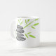Zen pedras de seixo empilhando e bambu verde deixa design de café. Adicione sua própria citação inspiradora, dizendo, expressão ou citações de Buda. Ideia elegante de presente para a aula de meditação, salão de beleza spa, centro de espiritualidade, terapeuta de massagens, tema de casamento, festa relaxante da natureza, budismo, ioga, chakra, atenção, negócios de saúde mental, compro, companhia etc. As rochas empilhadas balançam umas sobre as outras. Impressão de imagem do jardim de serenidade. Artigos personalizados de bebidas de 11oz para casa ou escritório. Boa ideia para amigos e família.