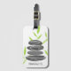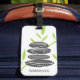 Zen pebble stacking stacking e o bambu verde deixa as etiquetas personalizadas de viagem design. Elegante impressão de arte para a aula de meditação, salão de beleza spa, centro de espiritualidade, massagista, tema de casamento, festa relaxante da natureza, budismo, ioga, professor holístico, treinador de vida, atenção, negócios de saúde mental, compro, companhia etc. As rochas empilhadas balançam umas sobre as outras. Imagem de serenidade. Adicione seu próprio nome personalizado, letras iniciais monográficas, aspas inspiradoras, discurso divertido, citação como Namaste etc. Acessório de etiqueta clássica para bolsas e malas.