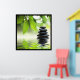 Zen Poster. Com orquídeas, pedras empilhadas e paisagem hídrica refletiva.