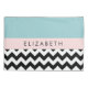 Padrão elegante, na moda e sofisticado zigzag (chevron) em preto e branco sobre fundo azul. Presente moderno e moderno, perfeito para o amante ziguezague na sua vida. Personalize adicionando o seu nome, apelido, monograma ou iniciais.