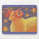 Aries o carneiro se coloca contra um céu noturno cheio de estrelas ouros. Sinal de fogo, 21 de março - 20 de abril (pode haver variação nas datas). Mousepad com um design dourado, laranja, roxo e azul personalizável na frente para você personalizar com seu próprio texto, imagens e ideias. Um lápis de cor original e desenho de tinta metálica de Jess Perry.