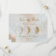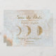 Tema Intrigante da Nova Idade falso brilho dourado cera zodíaca Lua Salve a Placa Plana de Data com fundo azul celestial e detalhes decorativos da tipografia caramelo de fonte azul que podem ser facilmente personalizados com seu próprio texto. Um design único e elegante para o casal moderno que gosta de estar em tendência, mas com uma abordagem aparentemente original. Pacote de Convite de Casamento completo disponível neste tema.