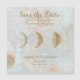 Tema surpreendente da nova idade falso brilho dourado cera zodíaca Lua Salve a Data Cartão de Anúncio Magnético com fundo azul celestial e detalhes decorativos da tipografia do caramelo, que você pode personalizar facilmente com seu próprio texto. Um design único e elegante para o casal moderno que gosta de estar em tendência, mas com uma abordagem original. O Conjunto de Convite para Casamento Completo está disponível mediante pedido por correio eletrônico para: juneleijon7@gmail.com